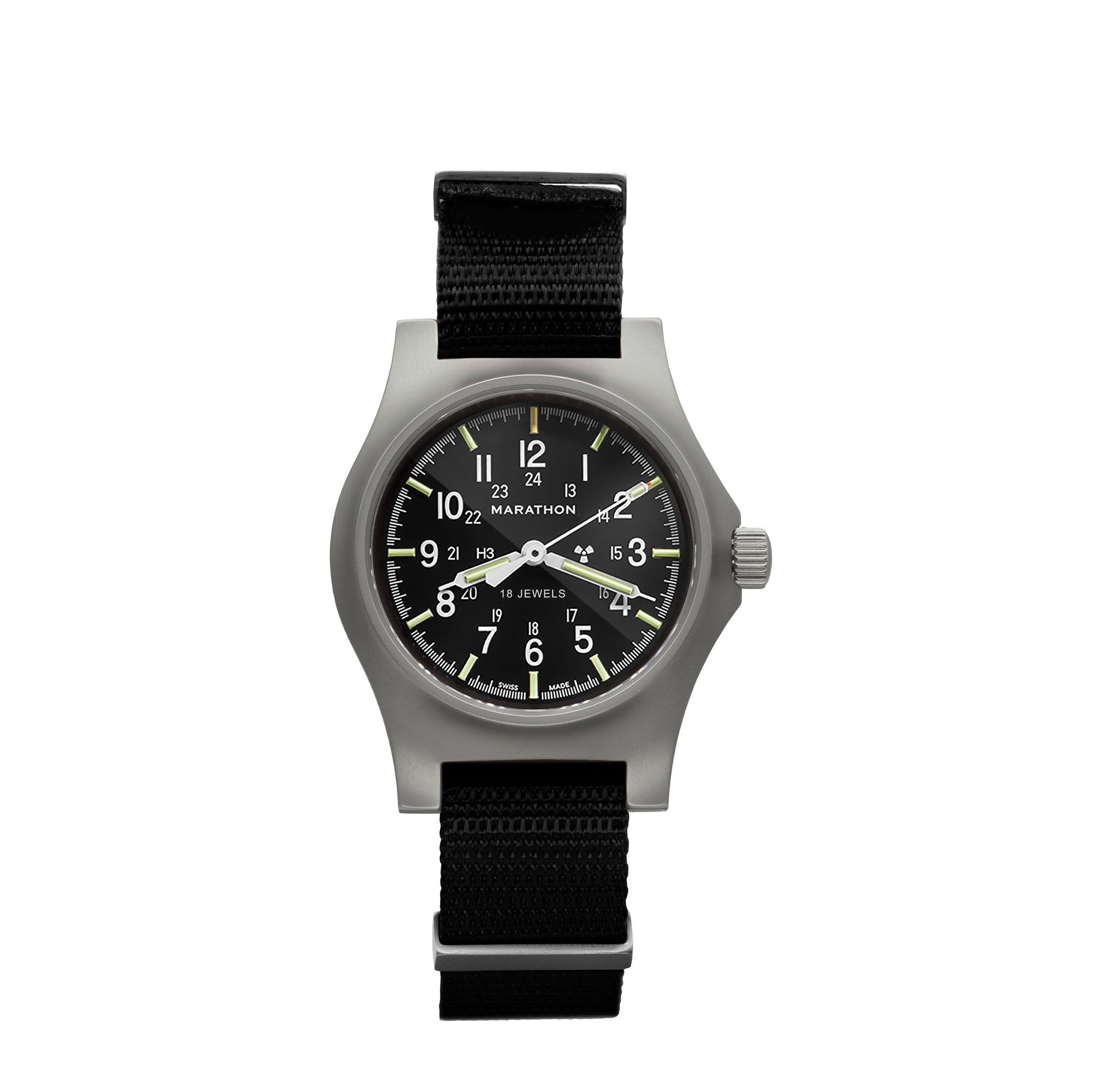 Marathon's Officer's Watch features a case diameter of 36mm, a thickness of 11mm, and 16mm lug width, making it perfect size for everyday wear.